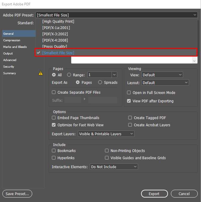 האם יש אפשרות באינדיזיין לכווץ PDF שישקול פחות.