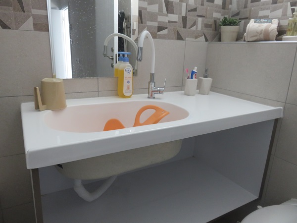בסוף מצאנו בחנות "פורצלנו עילית" (מודיעין עילית) "כיור בייבי"- כיור גדול ועמוק עם שיש, מגיע ב3 גדלים קבועים מראש.