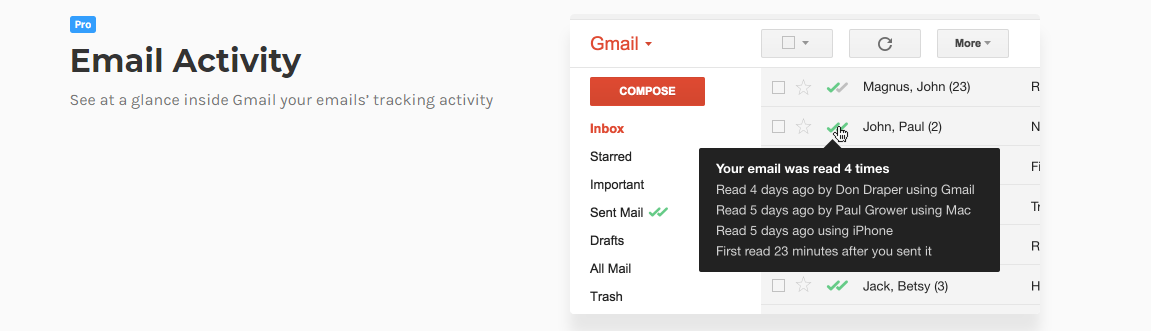 זיהוי שפתח המיילים שלך כאשר קיימים מספר נמענים יש מגבלות. קבל סביב המגבלות האלה ולדעת בוודאות מי פתחה את הדואר באמצעות לשאול את אנשי הקשר שלך להתקין Mailtrack
