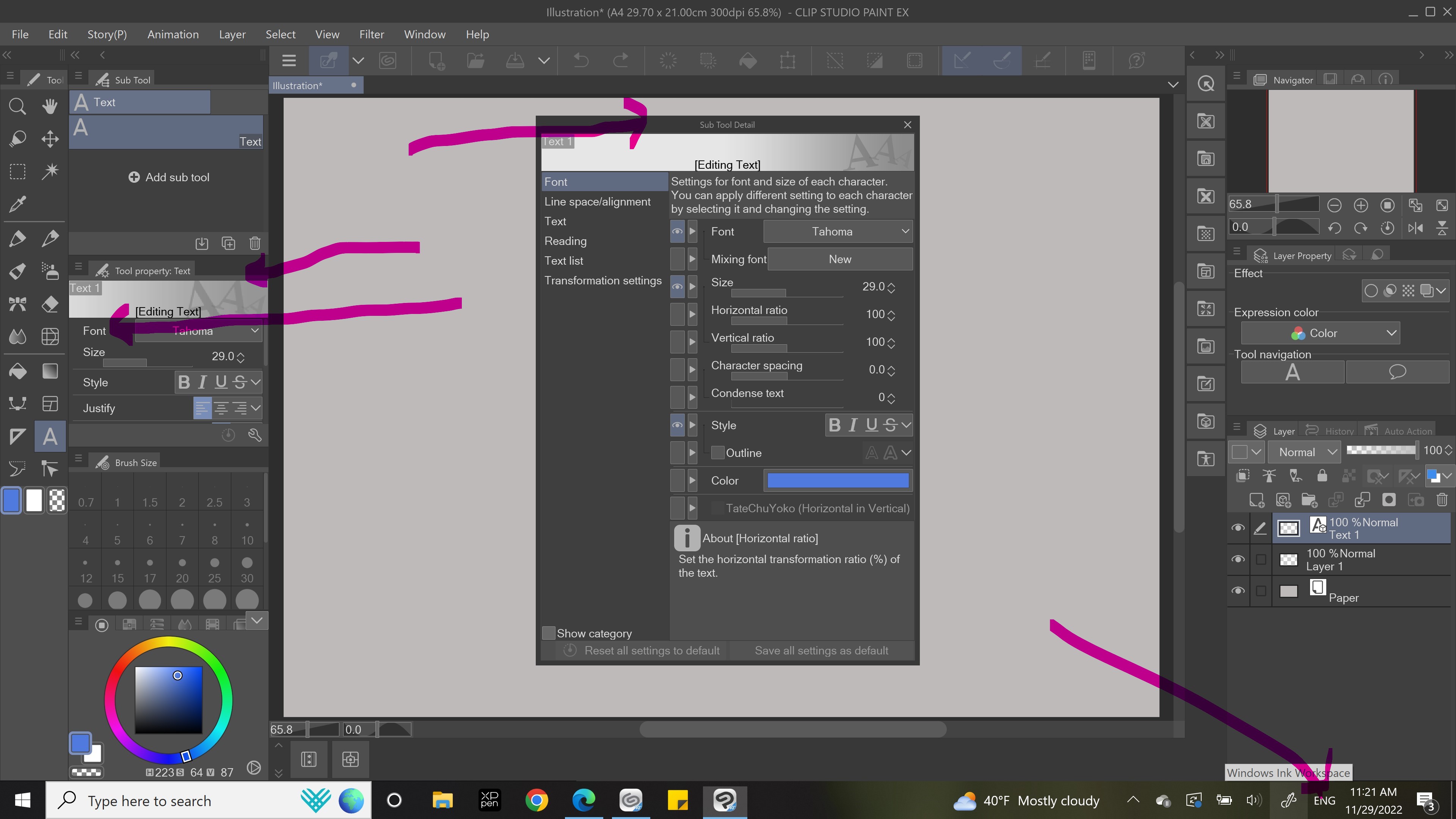 אפשר לנסות את אופציות ה'פונט' בTOOL PROPERTY או בSUB TOOL