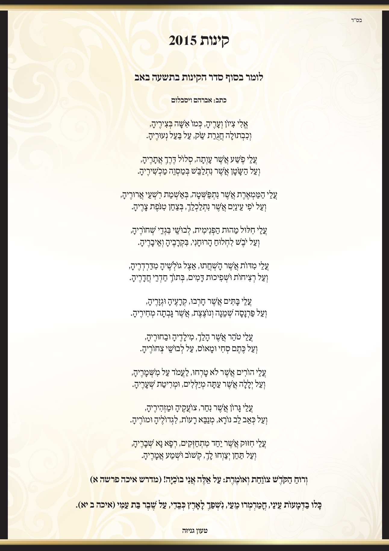 בעיצומם של ימי האבל והצער, ועם התקרבותו של תשעה באב,