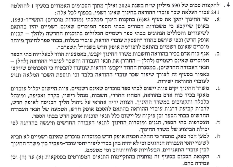או מורות חדשות או התאמה לאחוזי משרה, וכל מעסיק ראשי לנהל את סל השעות לבחירתו.