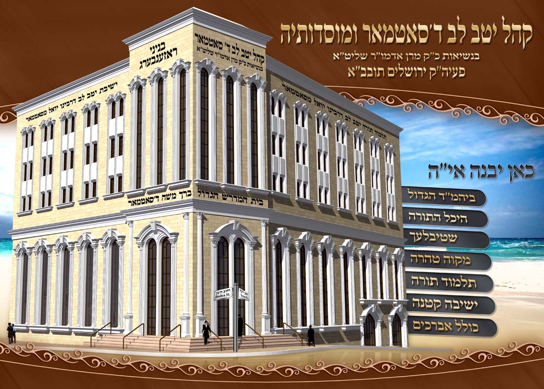 מדהים ביופיו הייתי מעלה קצת את ה"כאן יבנה אי"ה" וכן את כל הרשימה של המוסדות, קצת טיפה. למטה יהיה הגובה מעל הקומה הראשונה של הבניין.