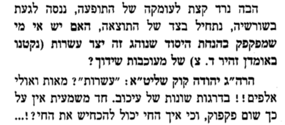 זה באמת דברי שאיני מבין, שמצד אחד יש שאומרים שהמצב בכללותו סביר כי יש ניסים, ואלו שלא מסתדרים הם מיעוט שאינו מצוי, ומצד שני יש אומרים שהמצב בכללותו "קרוב לפקו''נ ולעתים די פקו''נ ממש'' (כלשון המכתב שם) או ''נקרעים, מתבזים, מקמצים, מתמוטטים ולפעמים עד כדי מחלת לב'' כלשון המובא שם בשם הסטייפלר, או ''הדברים הגיעו עד כדי פקו"נ ממש על כל המשמעויות ההלכתיות של הדבר'' כפי שמצוטט ביתד נאמן שם בשם ''תלמיד חכם נודע'' (שאמנם בתחילה סבר שאין זה בגדר פקו''נ, אך כשחקר את הדבר לעומק הגיע למסקנה הנ''ל לפי האמור שם)