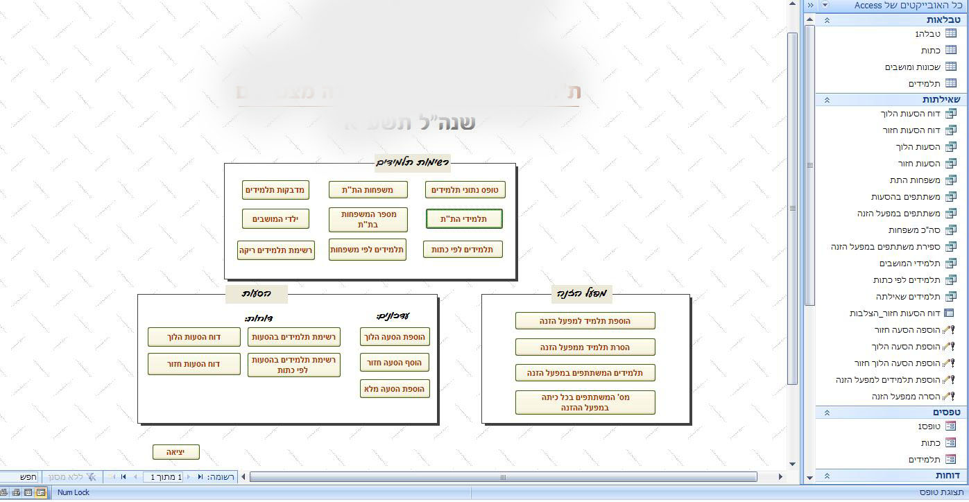 זה כולל דוחות מורכבים, וכן הכנסת כל הנתונים של התלמידים..