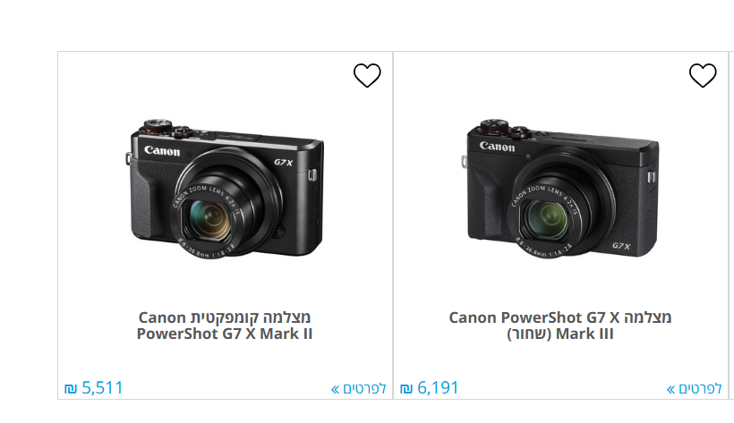 מצלמה כמה עולה היום מצלמת קנון G7?