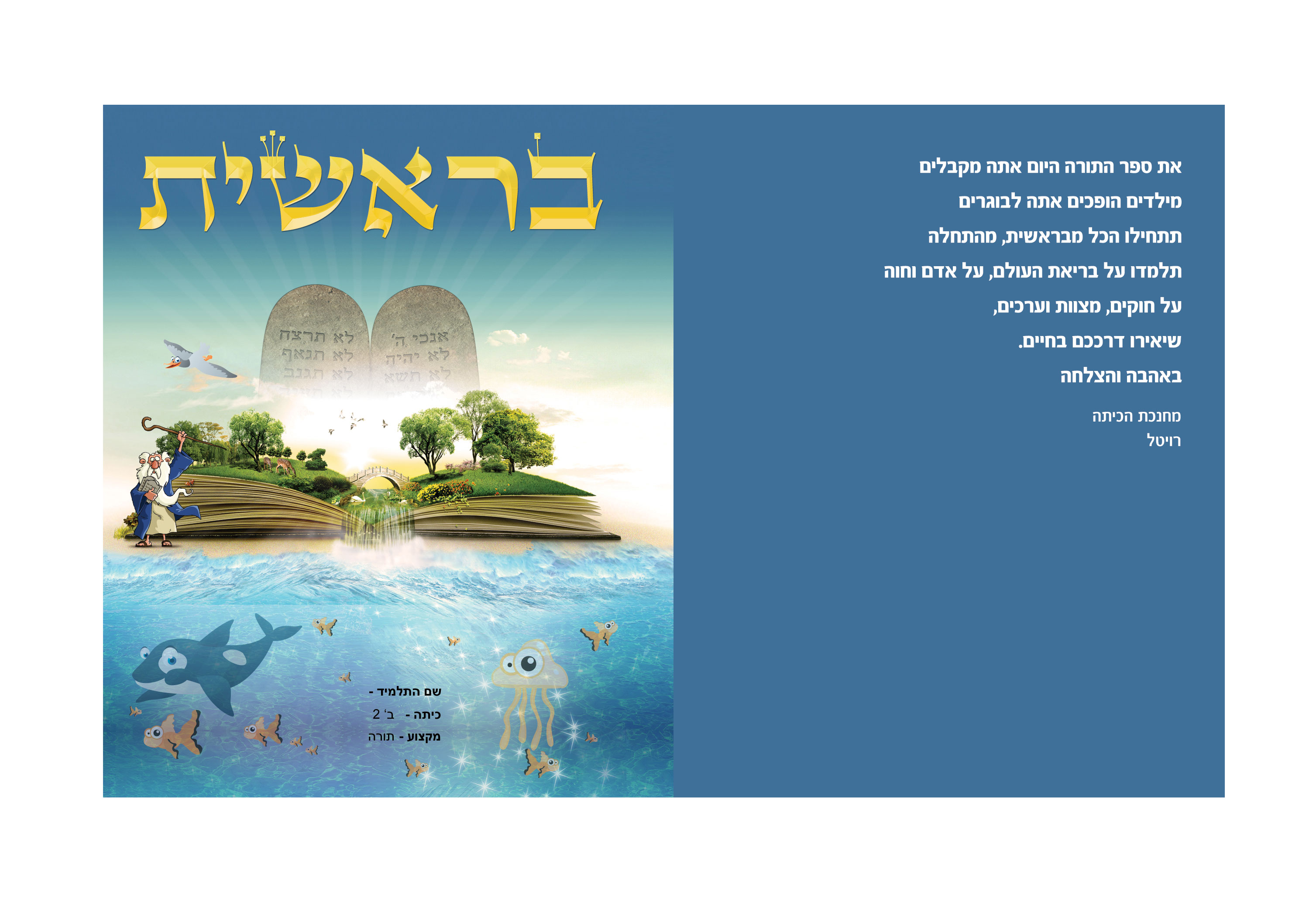 עיצבתי כריכה למסיבת חומש של בית ספר יסודי חילוני, לכן העיצוב "המודרני"
