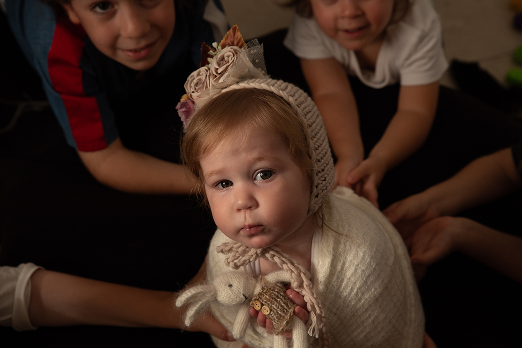 התמונה בבסיס היתה רק עם 5 ילדים ולא 7, אז שתלתי אותה בתמונה עם אותה תאורה, זווית והכל על התמונה הקודמת
