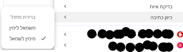 יש אפשרות במקש ימני בעכבר לשנות כיוון כתיבה