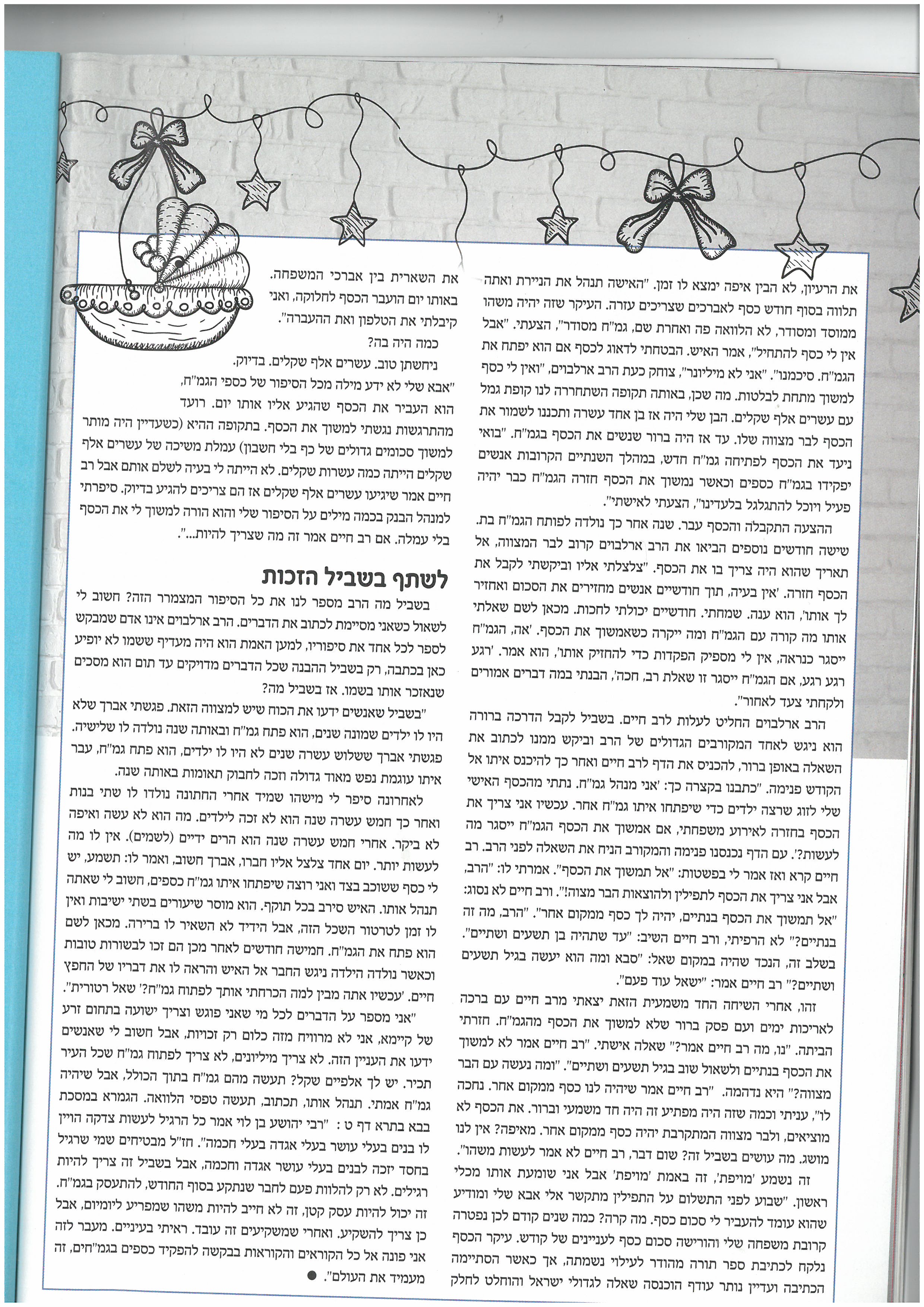 של הרב צבי ארלבוים לגביי פתיחת גמ״ח של כסף לזכות זוגות המצפים לילדים