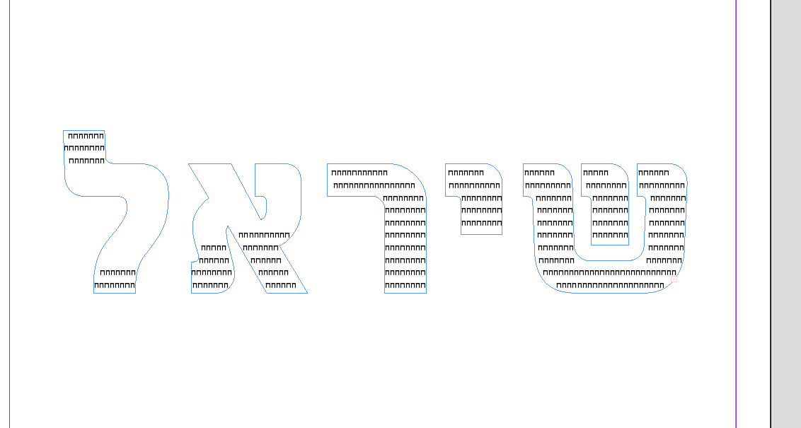 אני מנסה לעצב פוסטר שהבסיס שלו זה הרבה מלל שנכתב בתוך צורניות של אותיות (במקרה הזה שם)