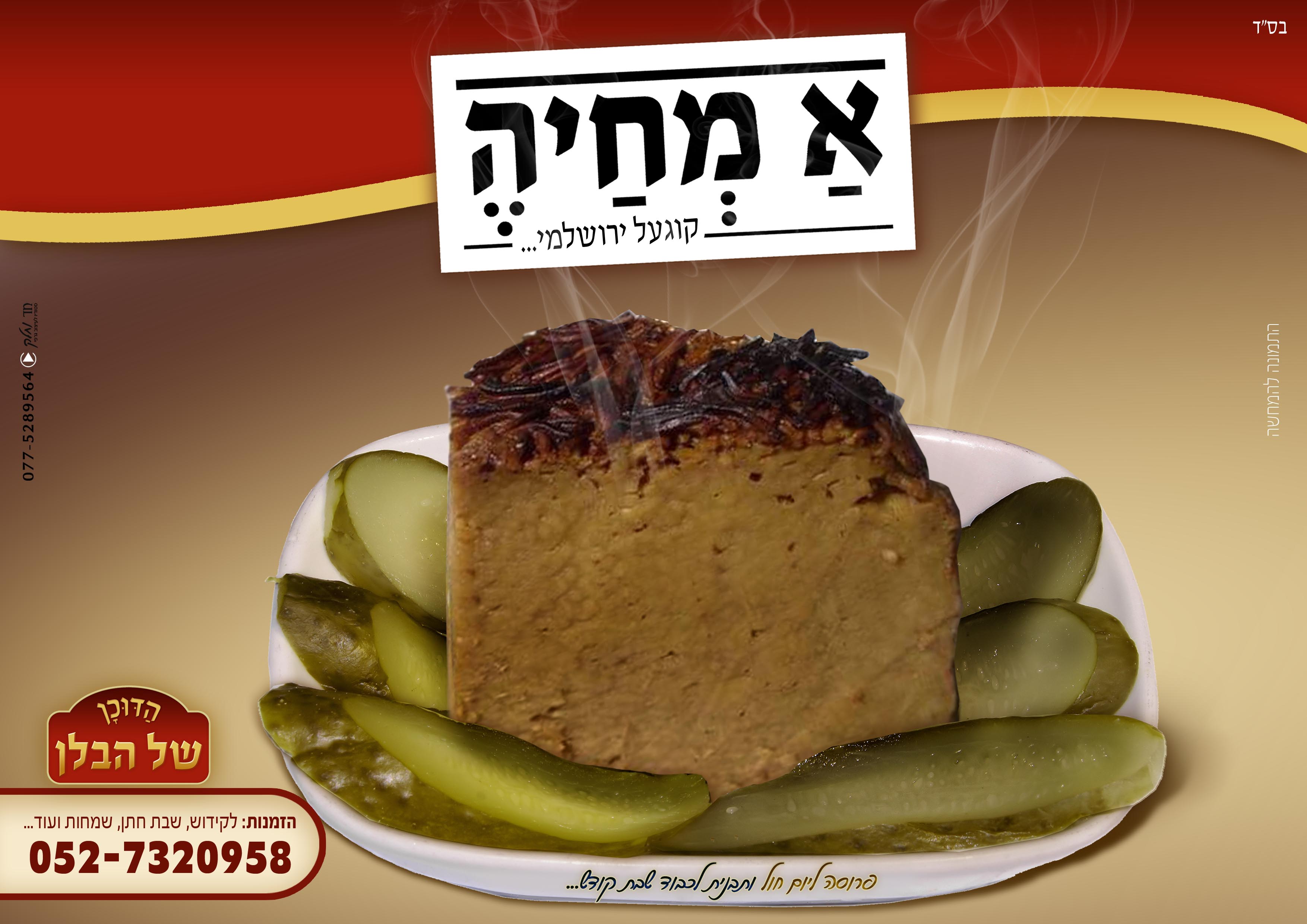 שים לב, ש"קוגעל ירושלמי" לא מיושר לקו משני צידיו.