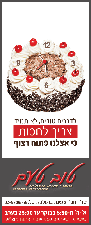 ה. המודעה לא מזמינה לאכול את העוגה, צריך להעביר תחושה של "אני רוצה לאכול את זה"