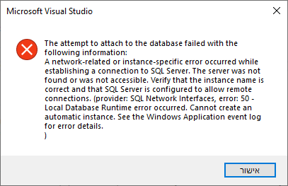 עזרה לא מצליחה לחבר מסד נתונים SQL ב visual studio 2022