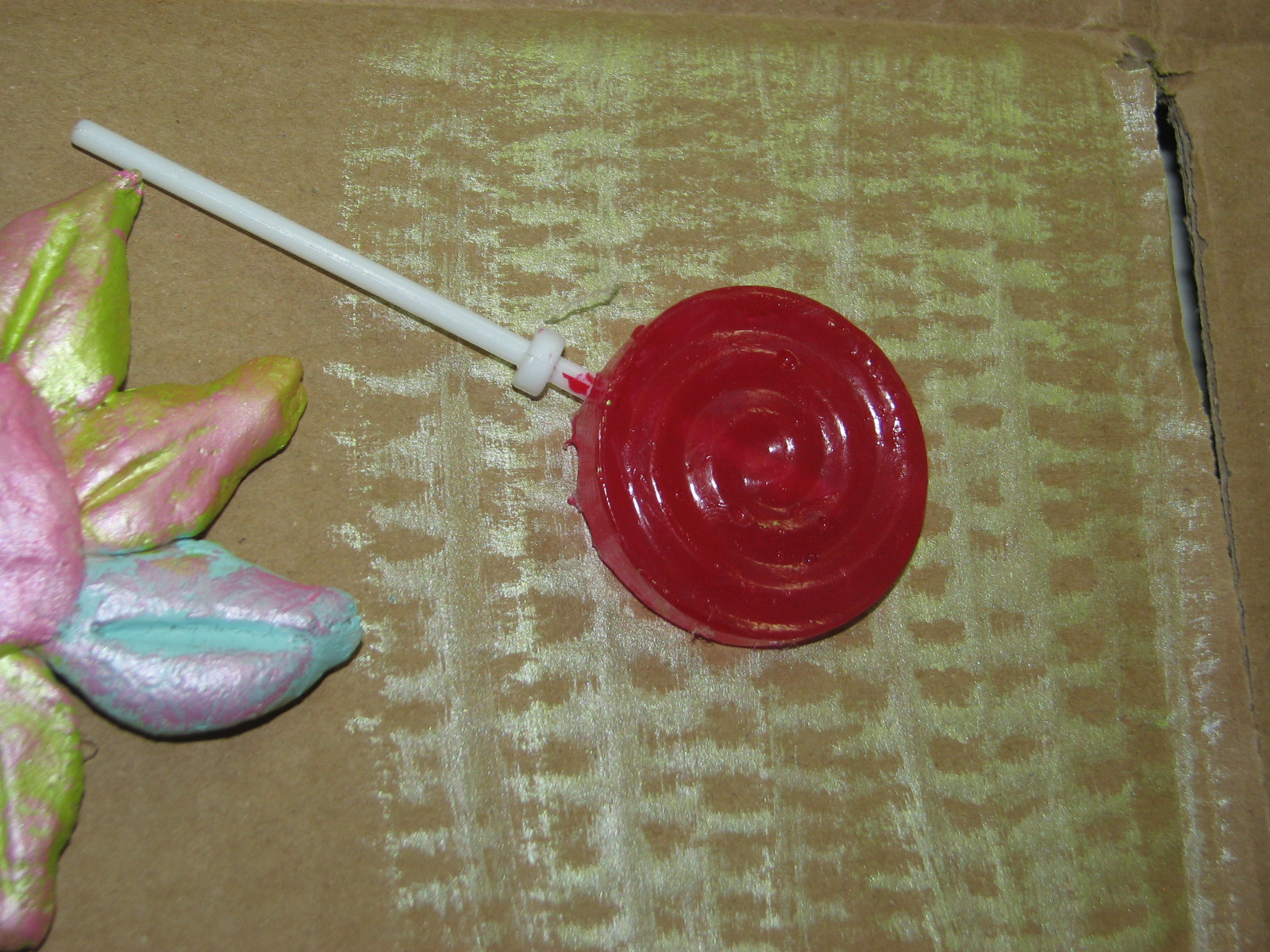 הסוכריה הזו לדוג' עשויה באופן הנ"ל - לגמרי לא אכילה. צבועה בצבע אקריליק.
