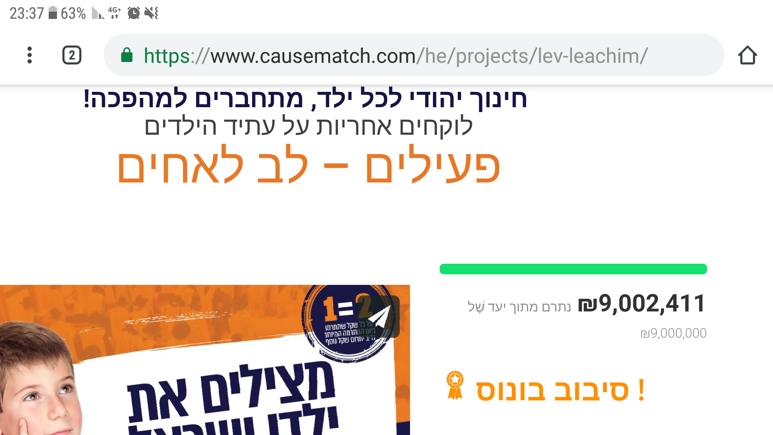 ₪9,046,108 נתרם מתוך יעד שֶׁל ₪9,000,000