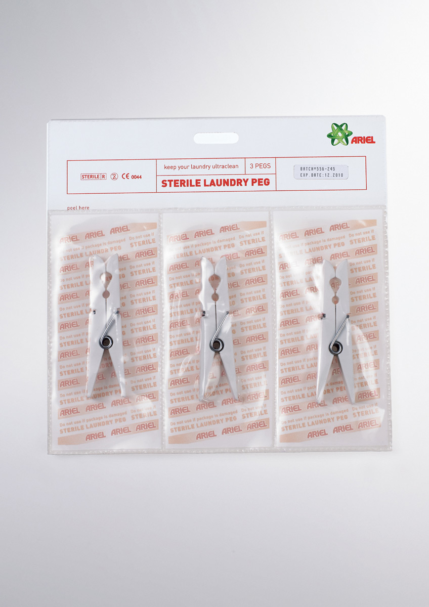 הפרסומאים של אבקת הכביסה המפורסמת 'אריאל', הוציאו חבלי כביסה ואטבי כביסה מיוחדים באריזות סטריליות כדי שהבגד שיצא נקי לחלוטין ממכונת הכביסה לא יתלכלכך ח"ו בהיותו מתייבש באוויר.