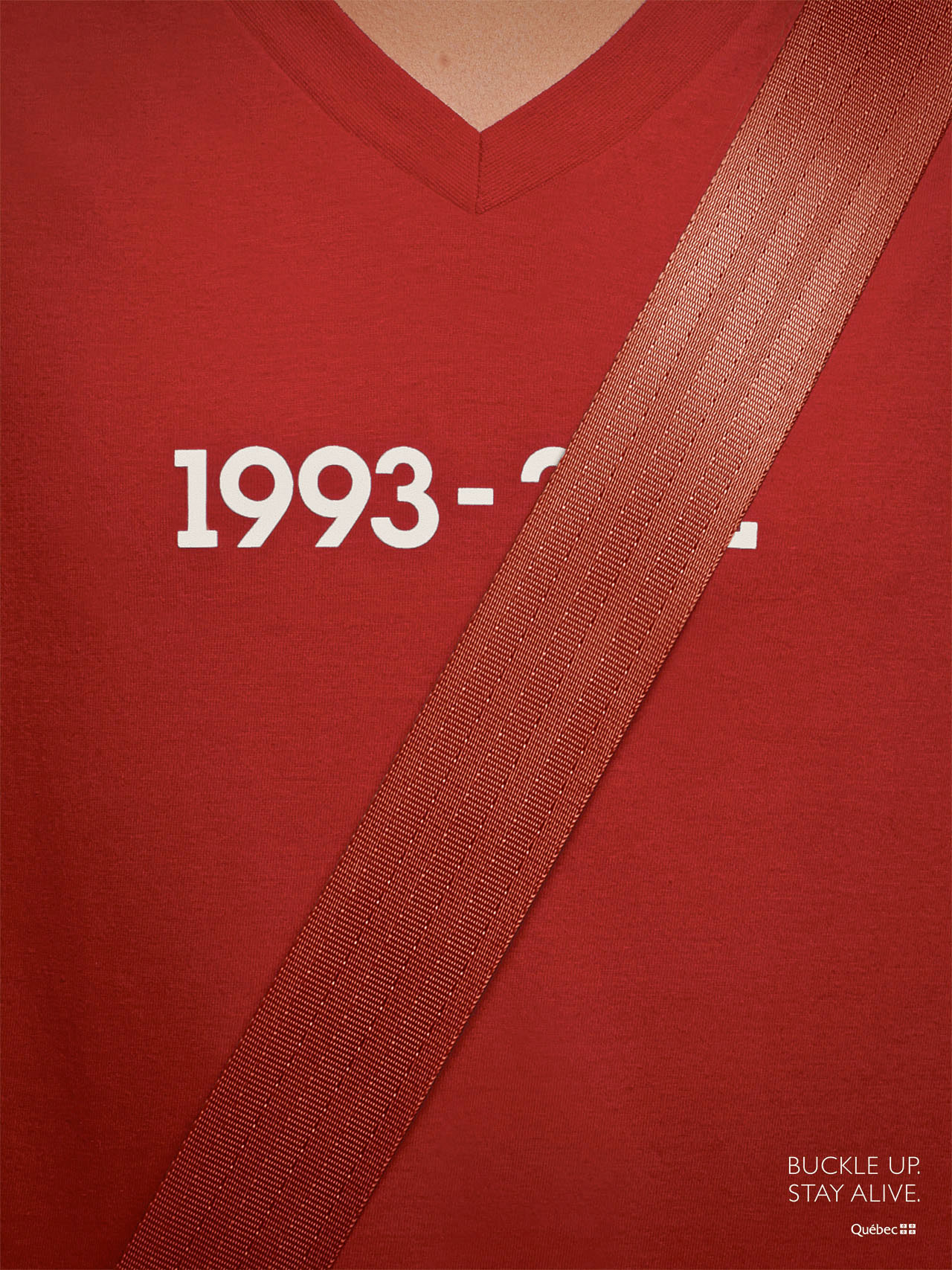 7. "תחגור - תישאר בחיים" - כשהחגורה מסתירה את תאריך סוף חייו של האדם.