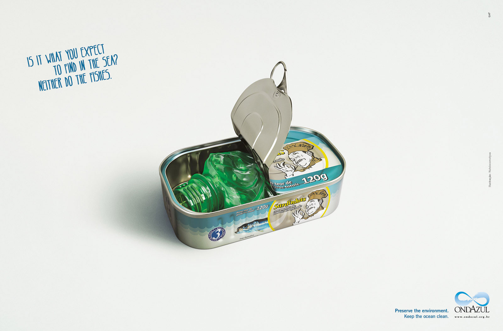 8. "זה מה שאתה מצפה למצוא בים? גם לא הדגים" - להסברה על זיהום הים.