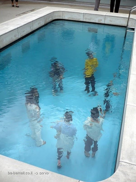 יש זכוכית שקופה ומעליה מים והאנשים מתחת למים.... כלומר בתוך הבריכה