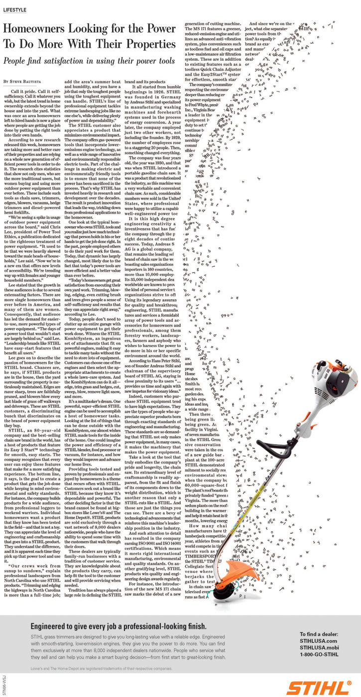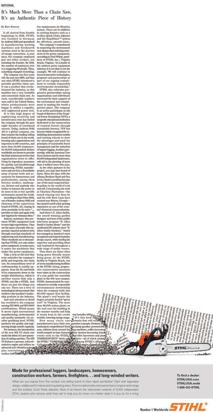 פרסומת לחברת Stihl - כלי עבודה וגינון.