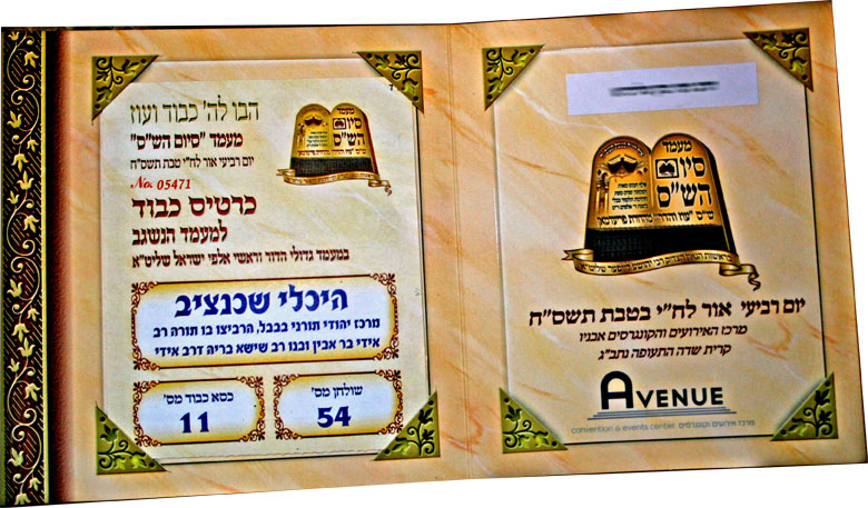 (כמובן שעיצובי וקסברגר הנפלאים ליוו את כל מהלך האירוע, כמין קופסה שנראית כמו מדף של ספרי הש"ס, ספר עב כרס 700 עמודים על המכון, וברכת המזון).
