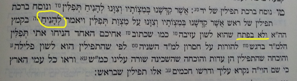 וגם לגבי ברכת התפילין יש מחלוקת איך לנקד את המילה "להניח"