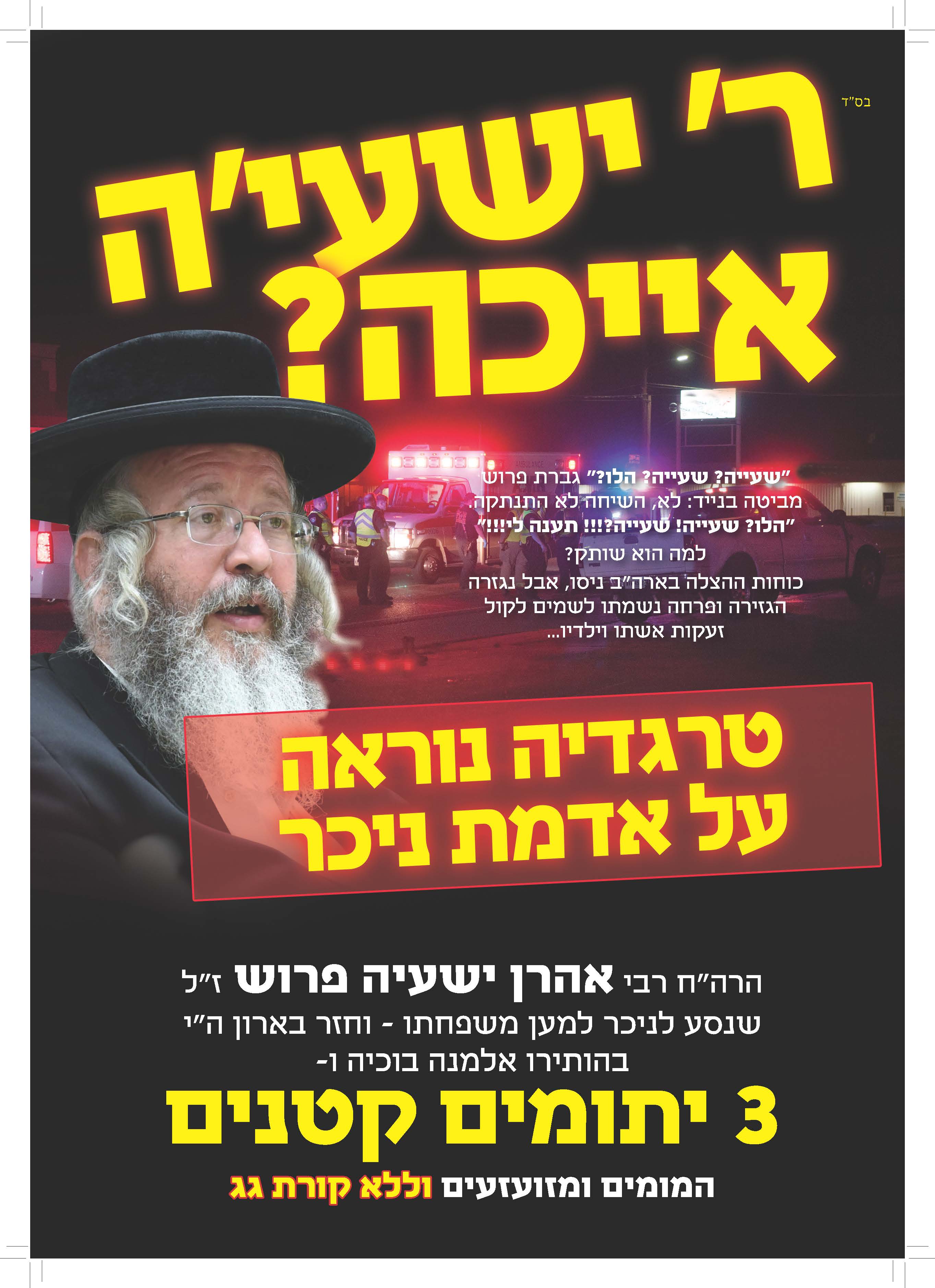 אסור לנו להתעלם מהחורבן של משפחת פרוש! אנחנו חייבים להתאחד, לדאוג שהעוני לא יכה בהם יותר.
