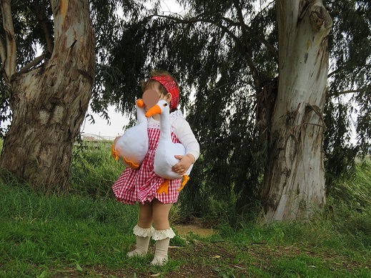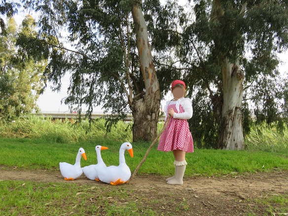 להשכרה תחפושת מושלמת של רועת אווזים מכף רגל ועד ראש כולל סרט לראש גרביים שמלה ואווז ממש אמיתי