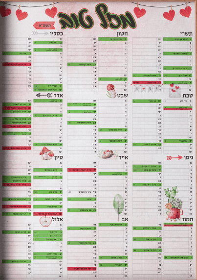וככה זה לוח שנה תמידי, בכל אירוע מוסיפים בכתב יד בשורה המתאימה.