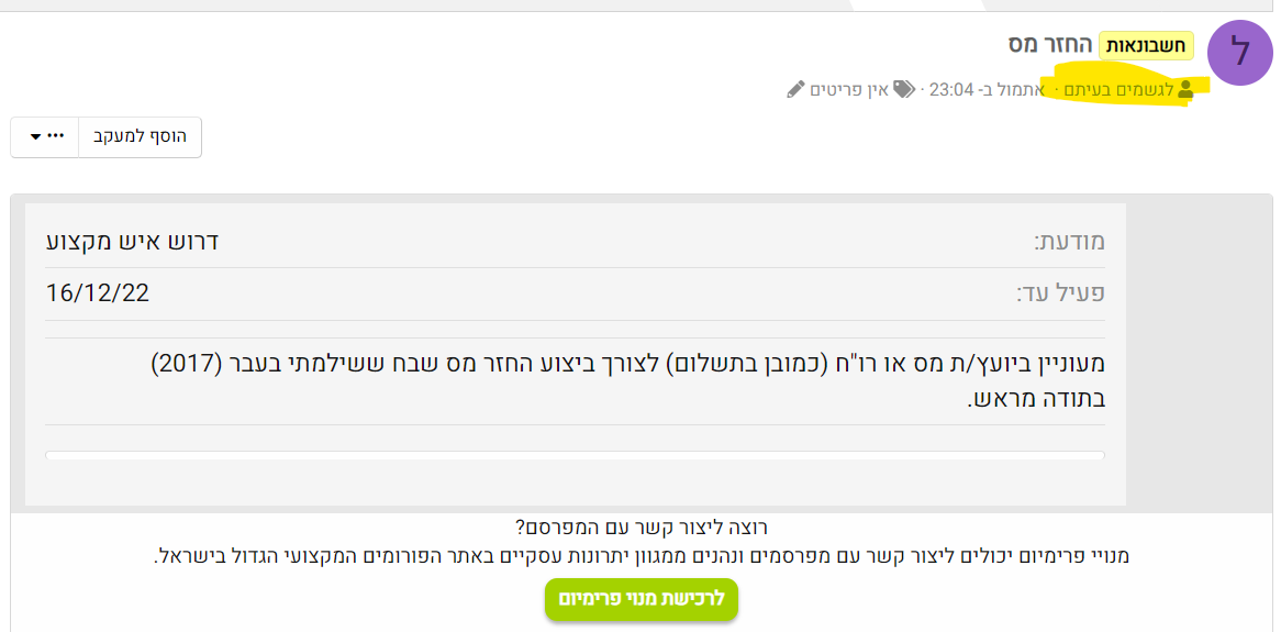אם יש לך פרמיום את אמורה לראות פרטי התקשרות
