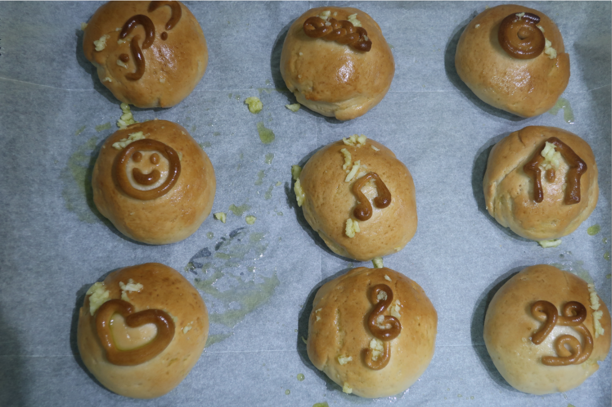 לבעלי זמן מיותר: מהשאריות של הבצק מנקנקים נחש ארוך, ומקשטים איתו את הלחמניות בגרפיטי לפי טעמכם.