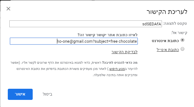 כללי לחצן ללינק שיפתח מייל חדש עם נושא בגימייל, איך עושים?