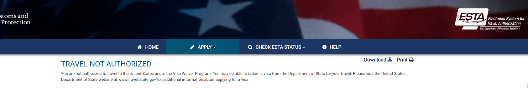 E-mail Security: If you are concerned about clicking the above link, ESTA can be accessed by typing in the address bar of your browser.