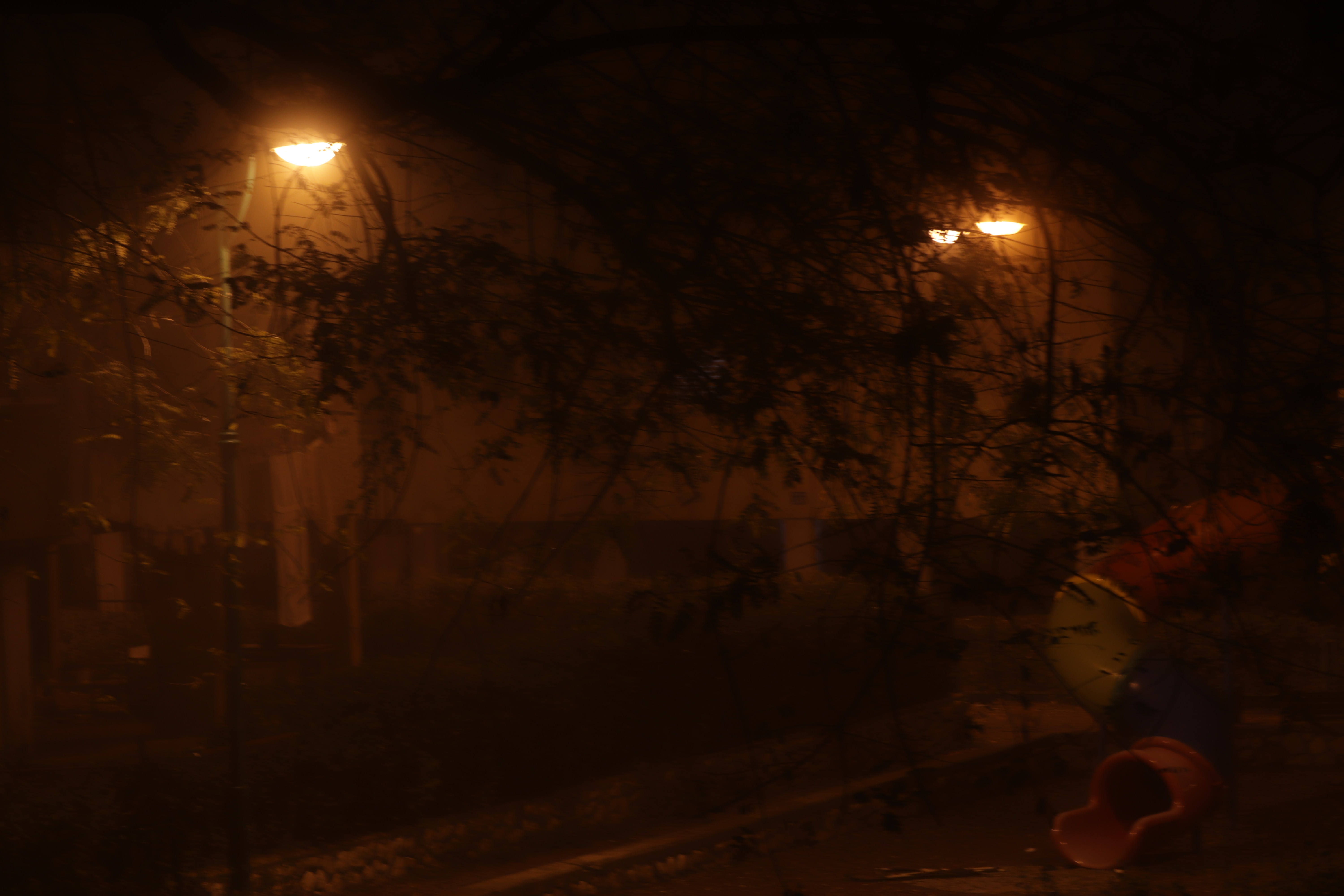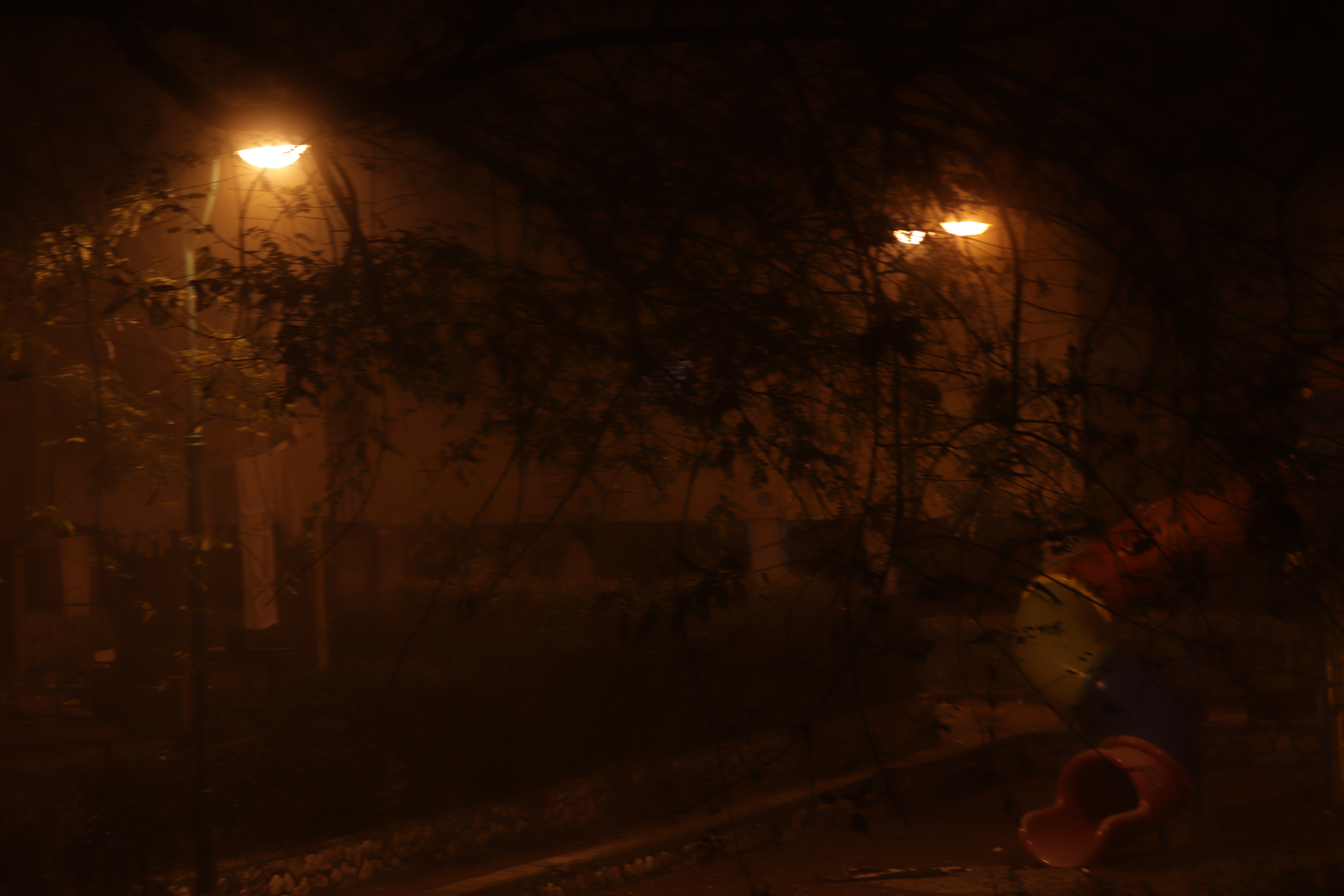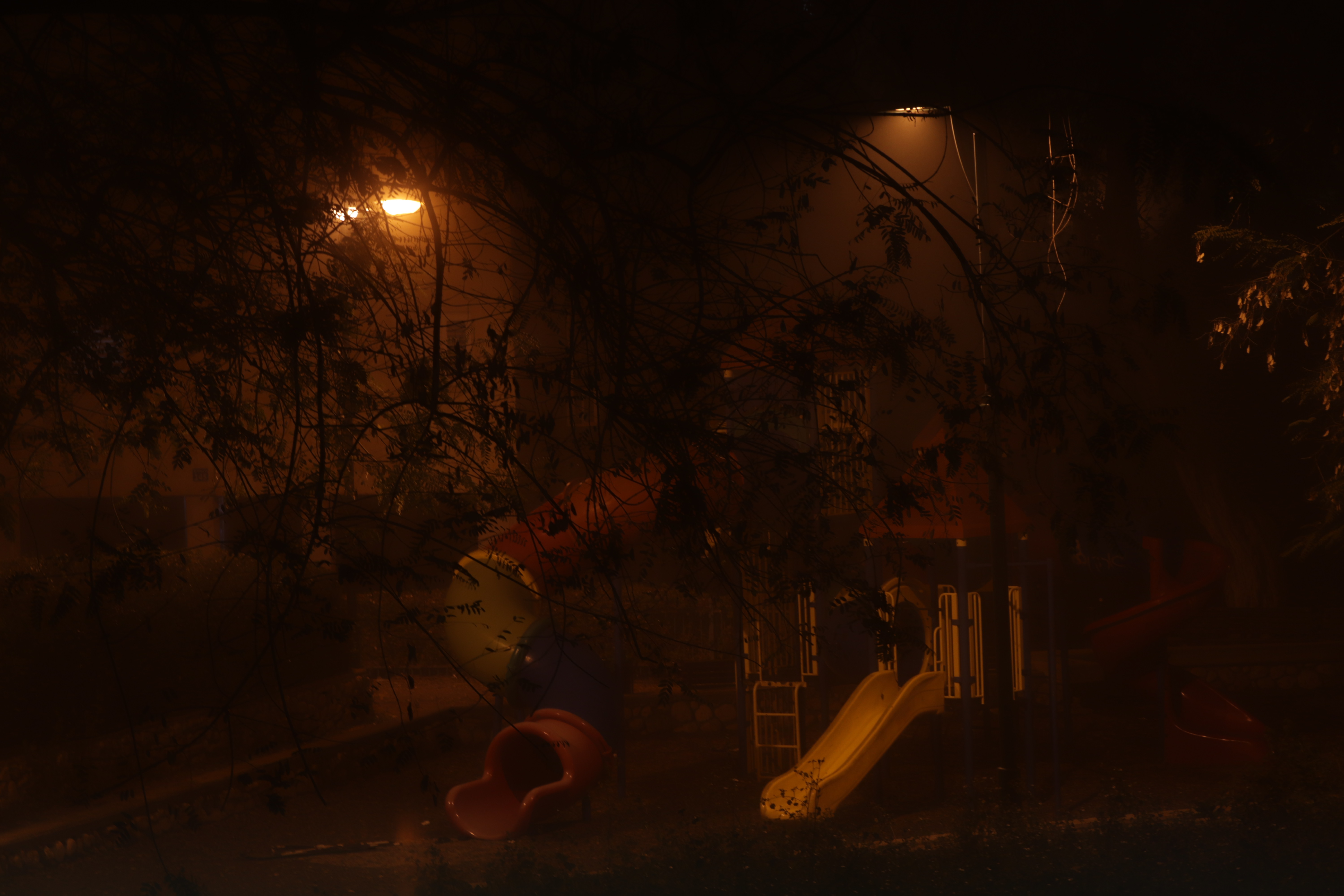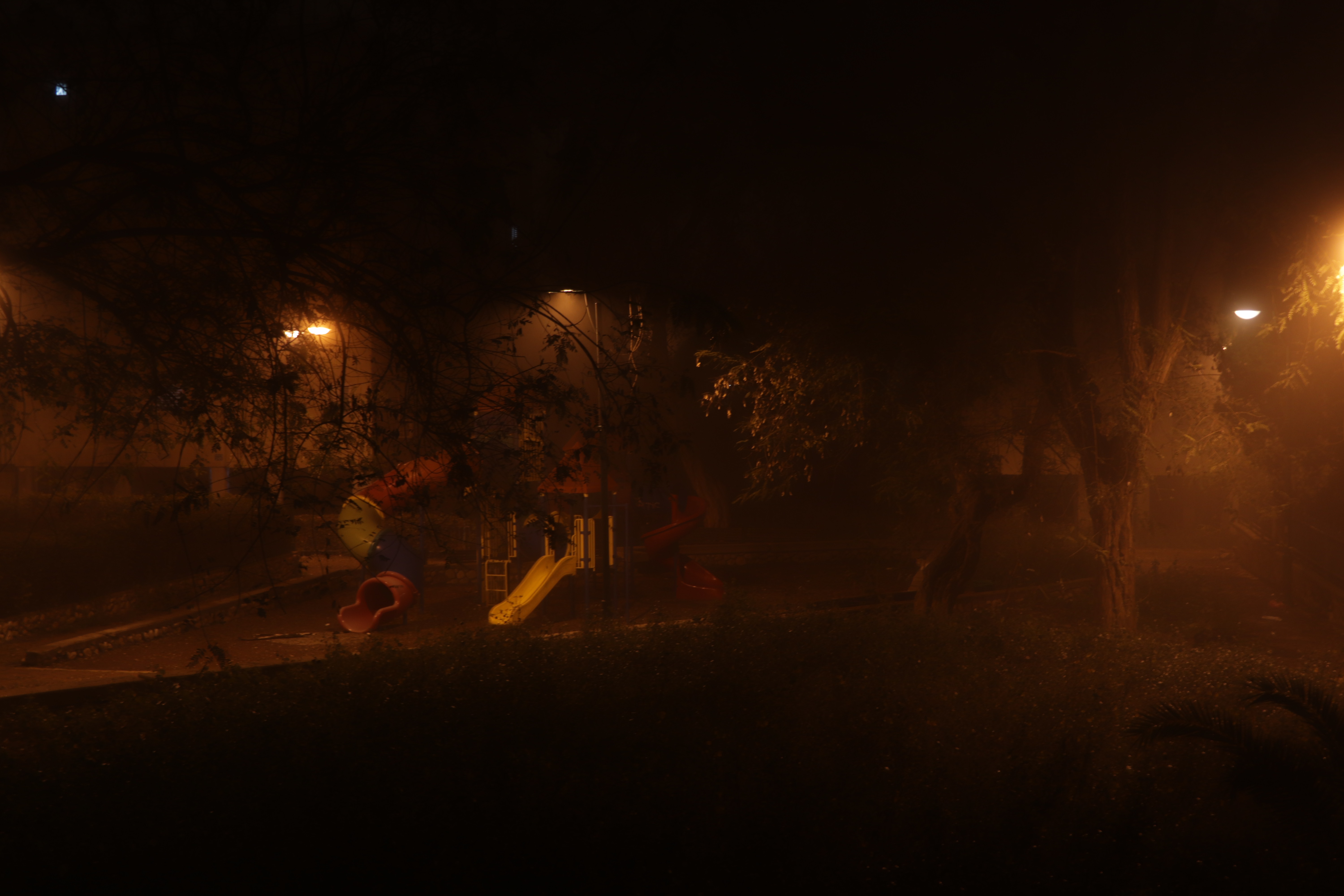 רק מנורות הליל מאפילות על הגינה השכונתית..