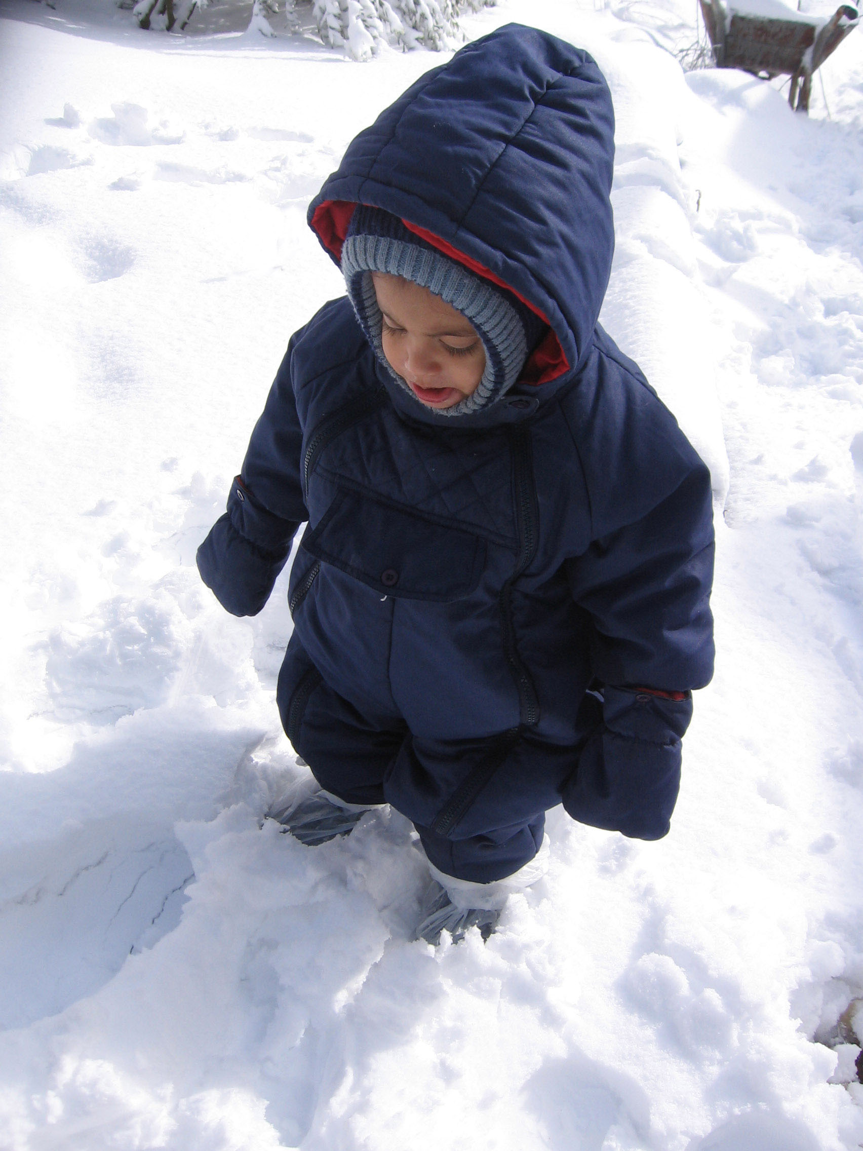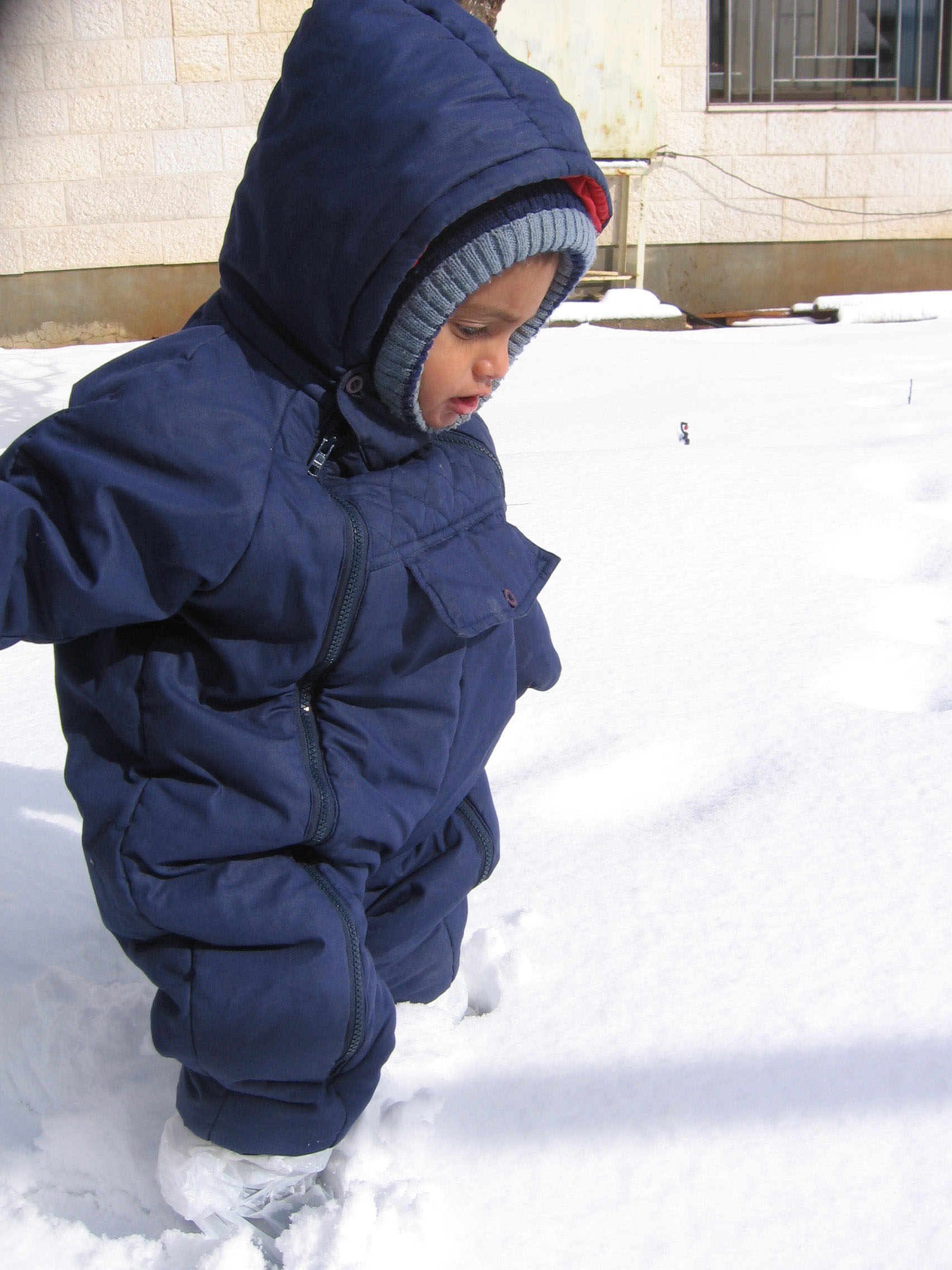 הבן שלי בן שנה וחצי הלך בשלג עם כולנו ונהנה מאוד.