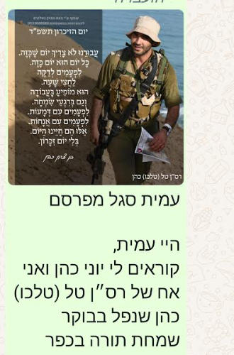 וכן לעילוי נשמתו של הקדוש רס"ן טל כהן הי"ד.