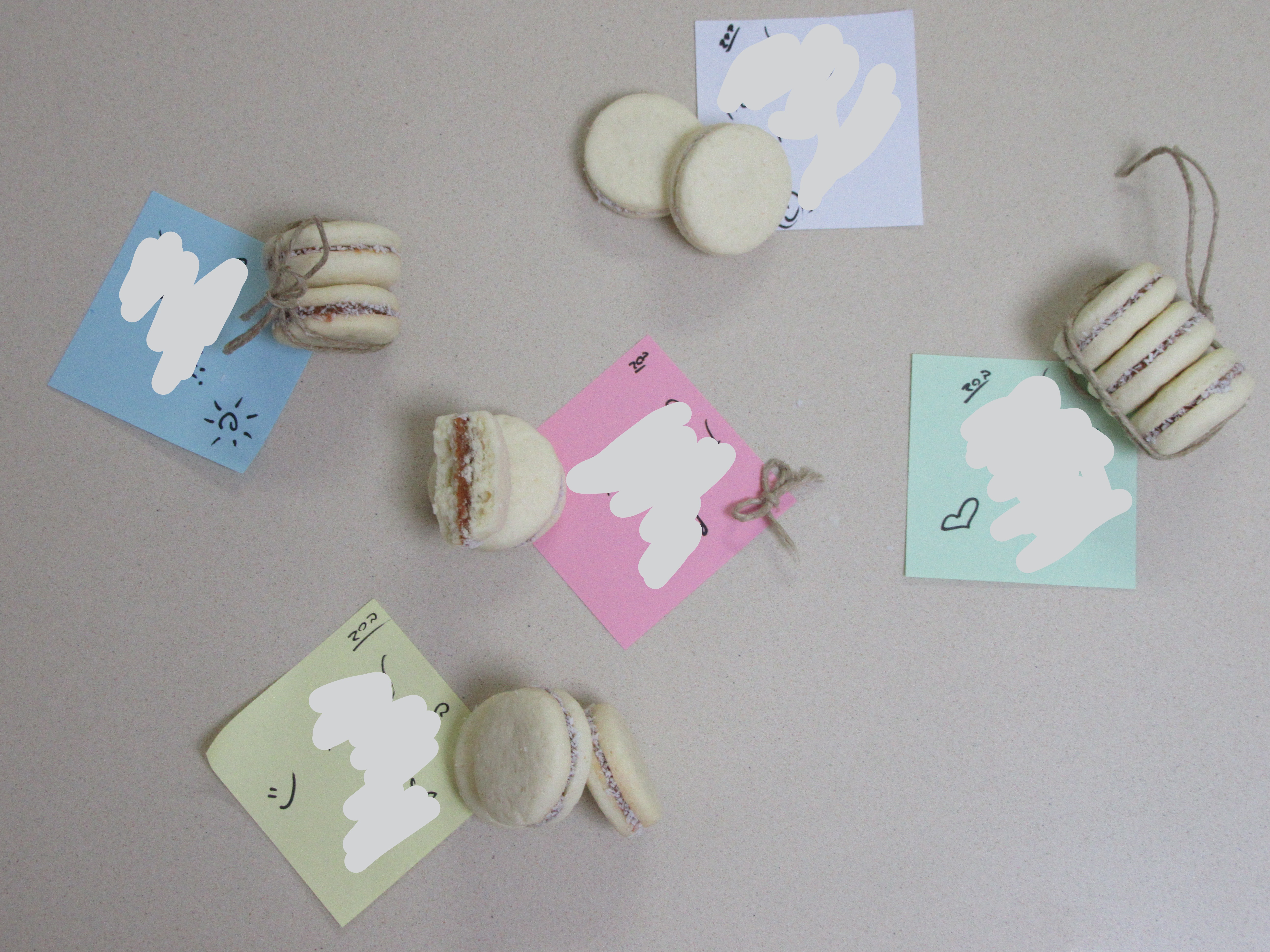 מניחים את העוגיות בתבנית עם נייר אפייה ואופים 6 דקות בחום של 180 מעלות, בתנור שחומם מראש. על העוגיות להישאר לבנות.
