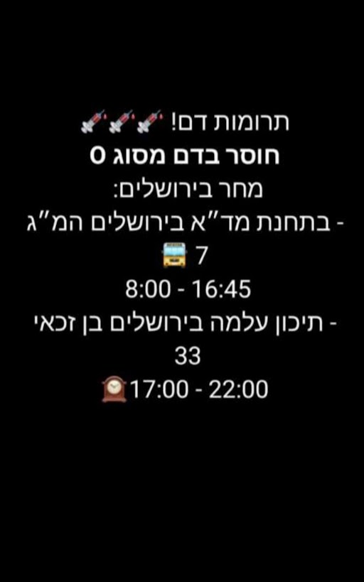 שתפו את הודעת מד"א - ישנו מחסור של מנות דם. אלה המוקדים לתרומת דם: