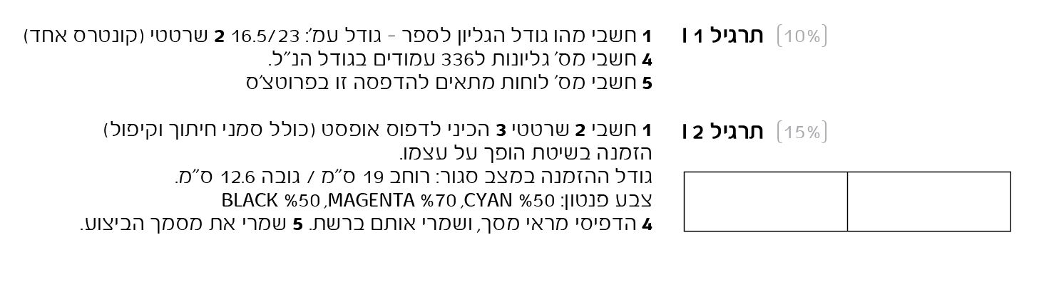 1. 70/100 (16.5*4= 66 + 1 סמ חיתוך * 4 קיפולים. 23.5*4 = 94 + 1.5 סמ גרייפר + חיתוך כנ"ל)