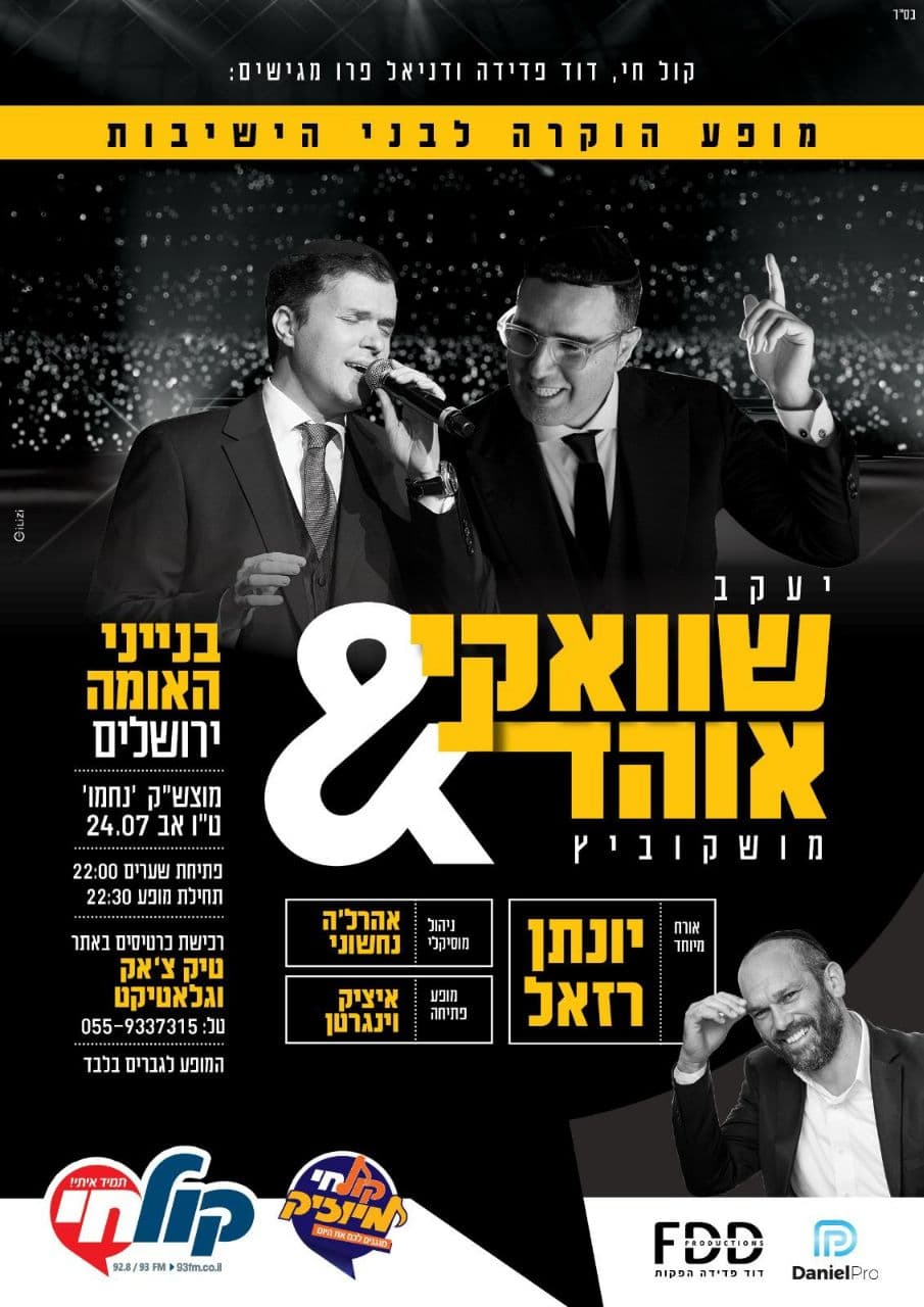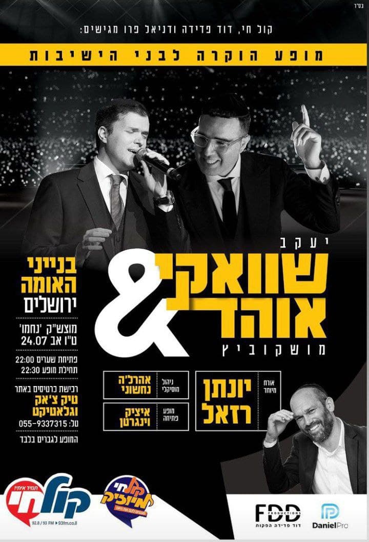 מי שמעוניין בכרטיסים להופעה של שוואקי וחיים ישראל ביום רביעי הקרוב בנתניה (בהפרדה),