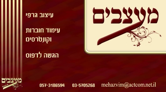 אבל לא אהבתי את הלוגו - המשיכה של ה-ע' צורמת לי, לא מתיישבת טוב בעין.. נסה לשחק עם זה עוד קצת.