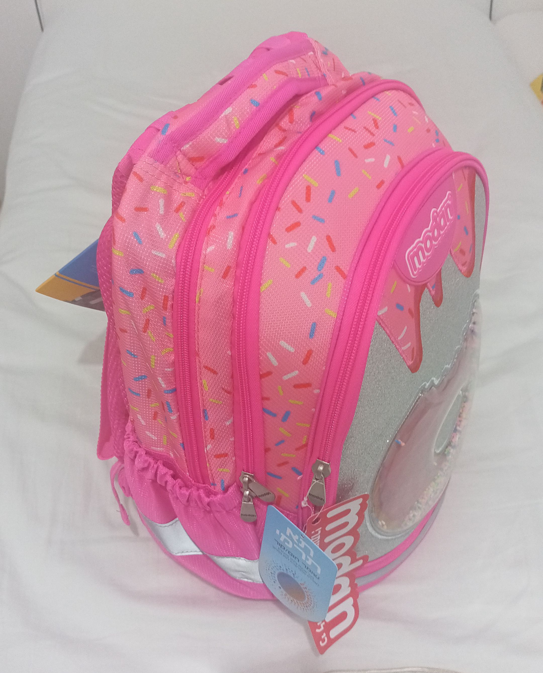 למכירה ילקוט לכתה א' + קלמר + כיסוי גשם של חברת מודן