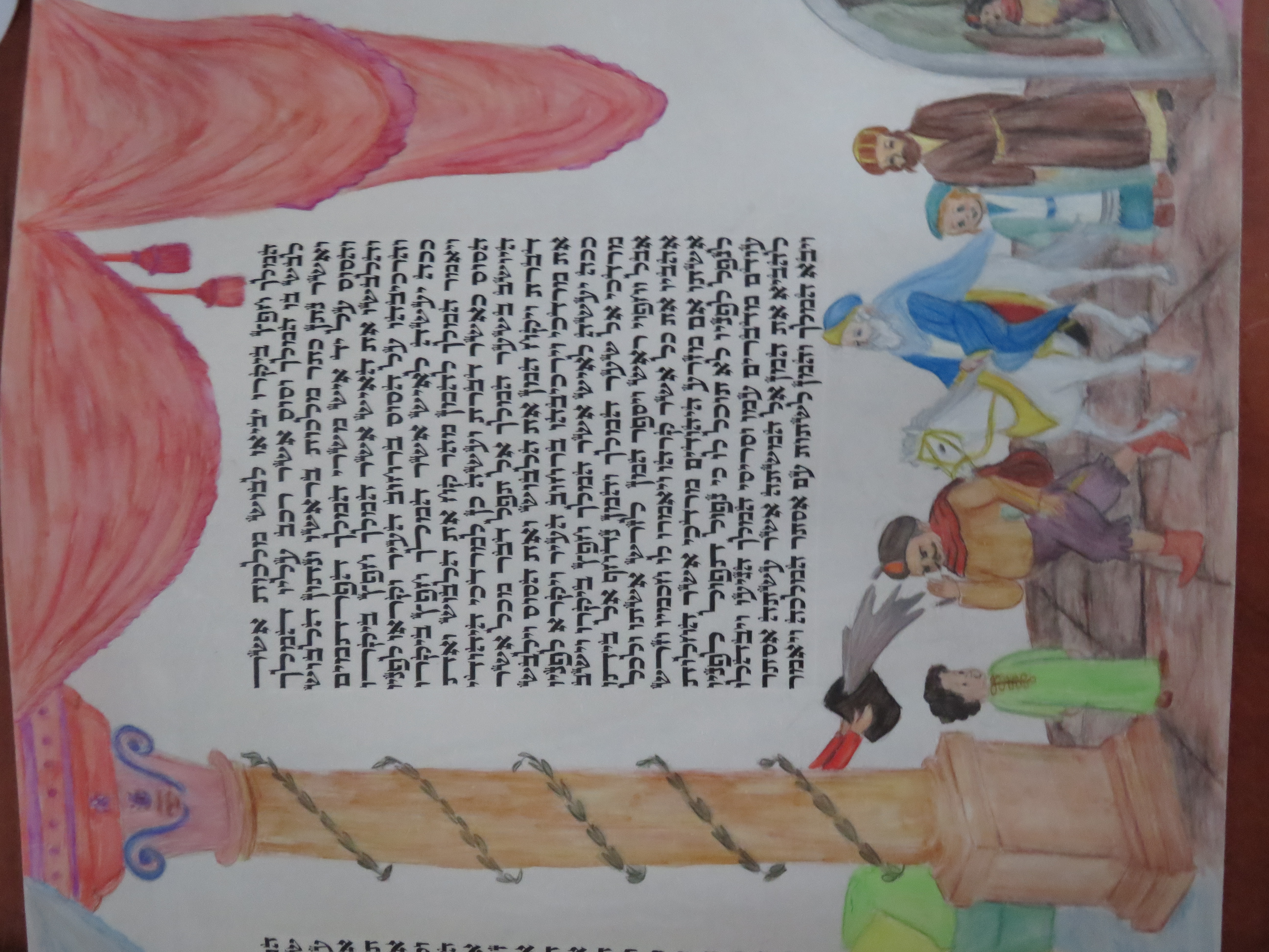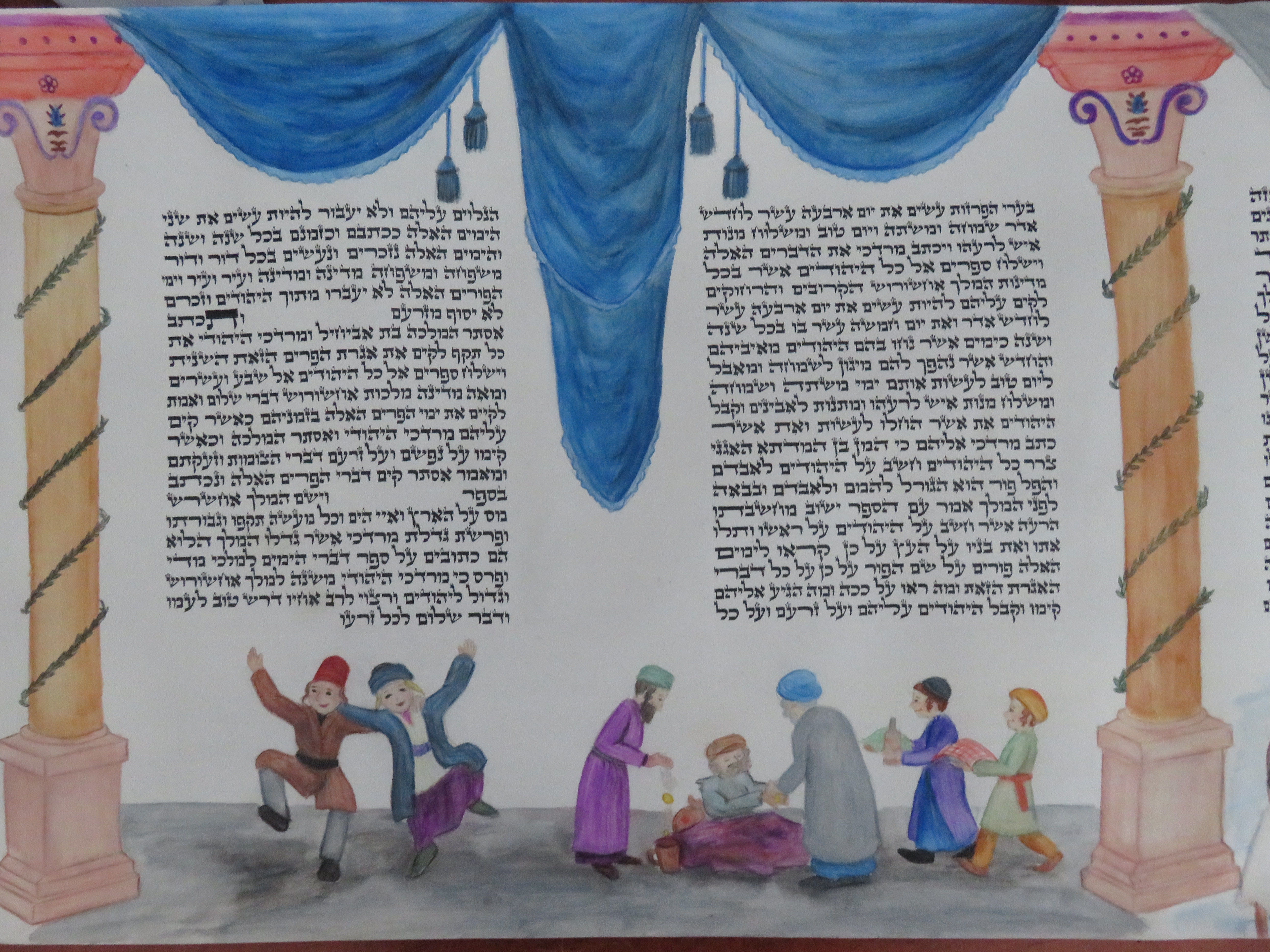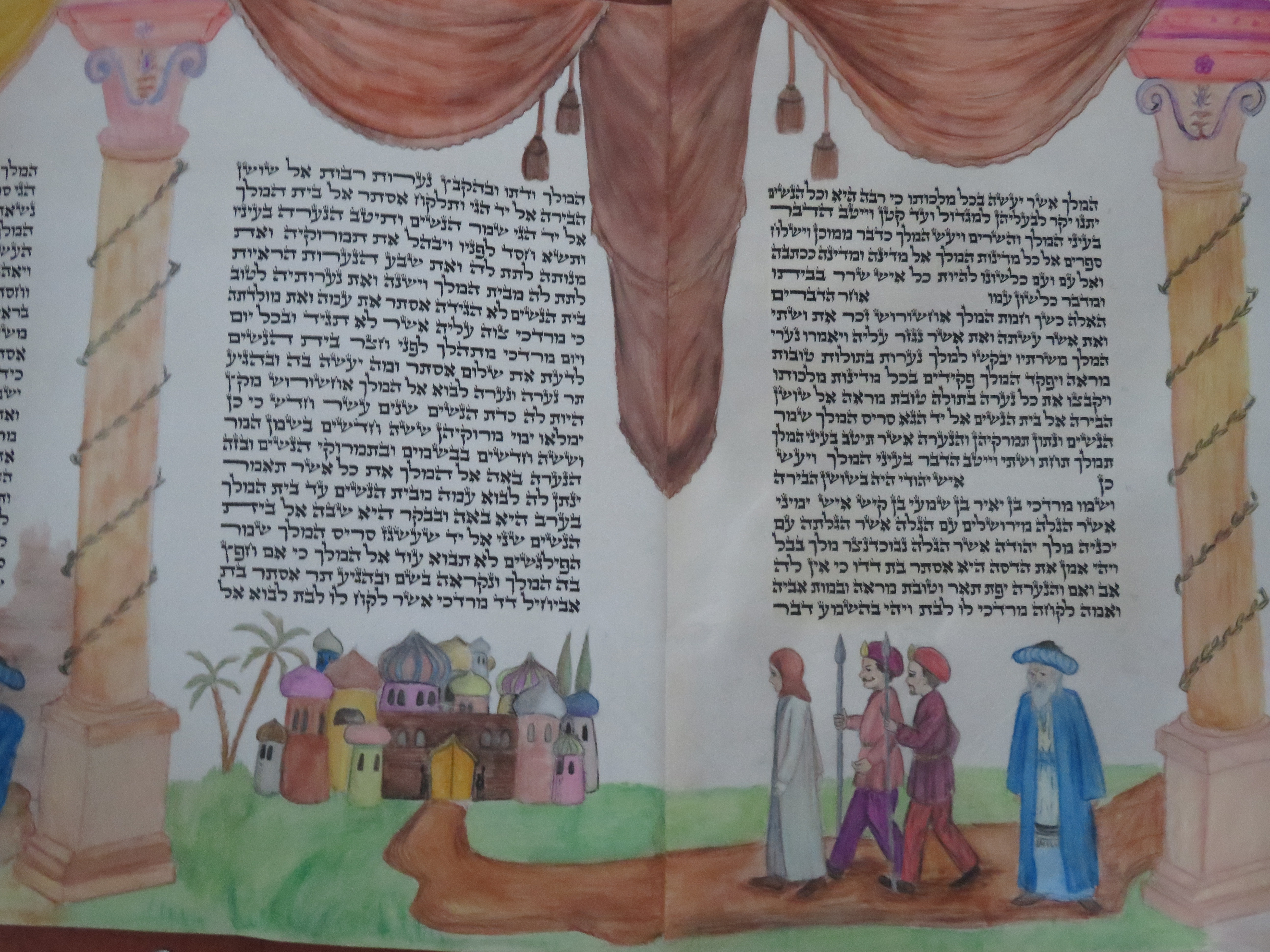 בנערותי ציירתי מגילת אסתר על קלף בסגנון ציורי מחניים