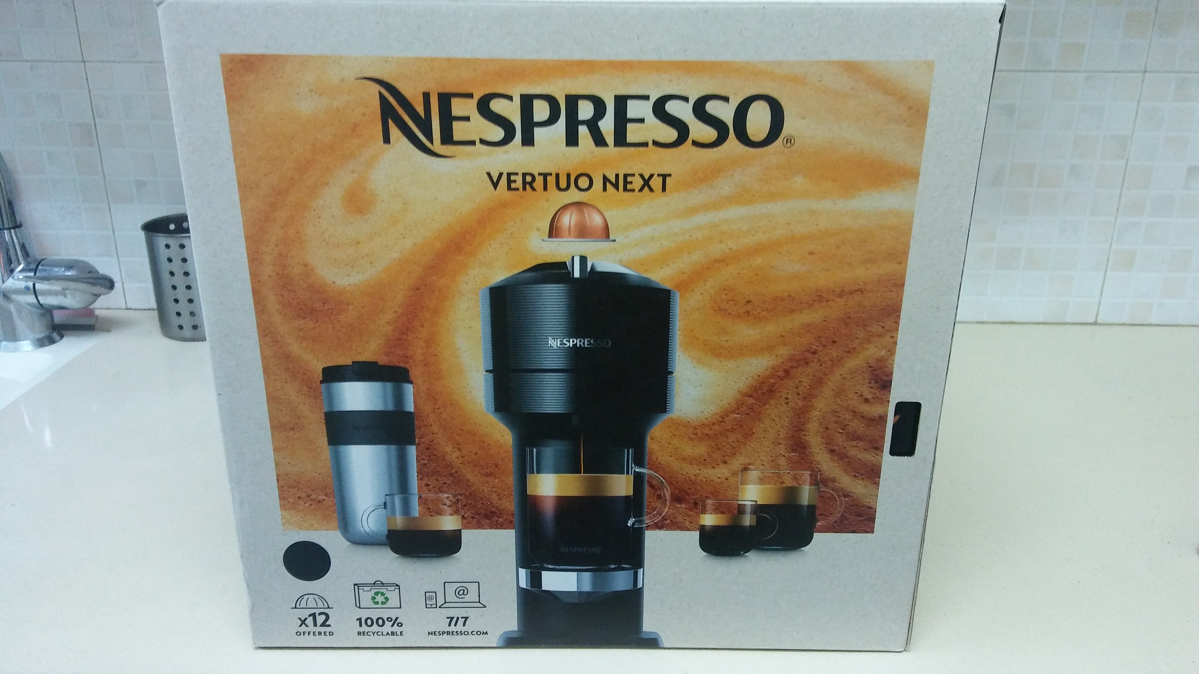 המכונה של חברת נספרסו, דגם vertuo next. מגיעה עם חבילת קפסולות.