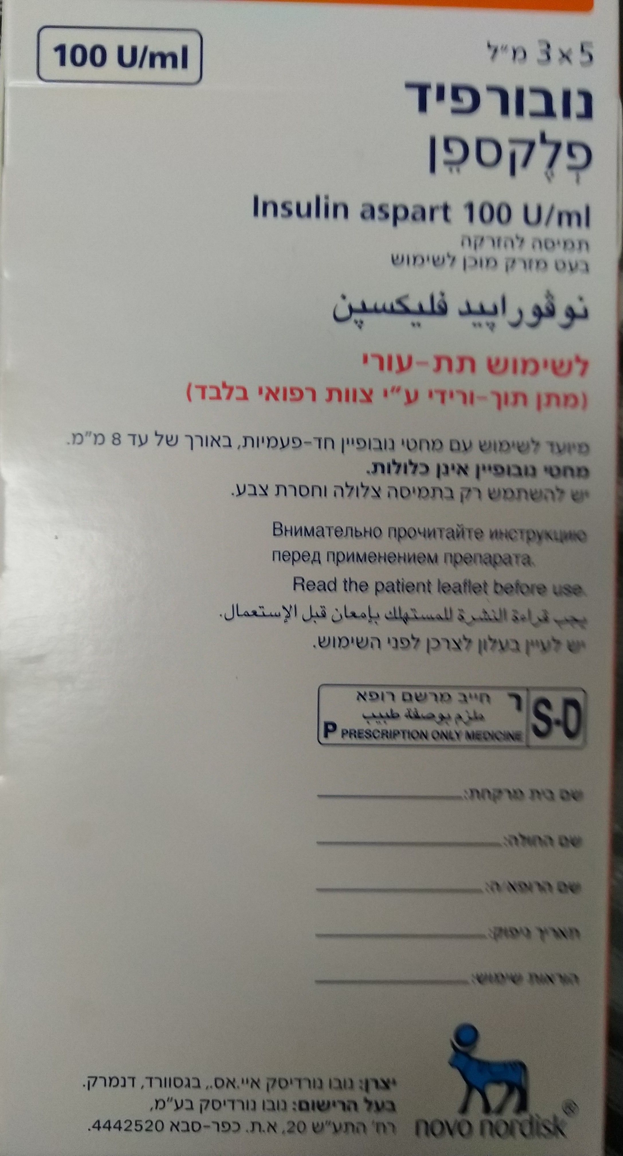 למסירה 7 חפיסות של תמיסת נובורפיד פלקספן.
