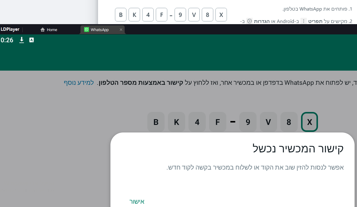 לנסות עם QR.היה מותקן לי וואצאפ עם אימולטור של LDPlayer