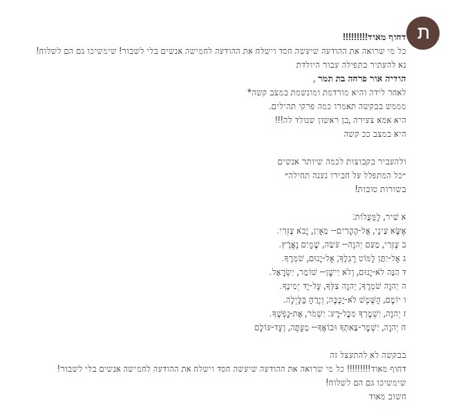 לרפואת היולדת הודיה אור בת פרחה תמר מורדמת ומונשמת