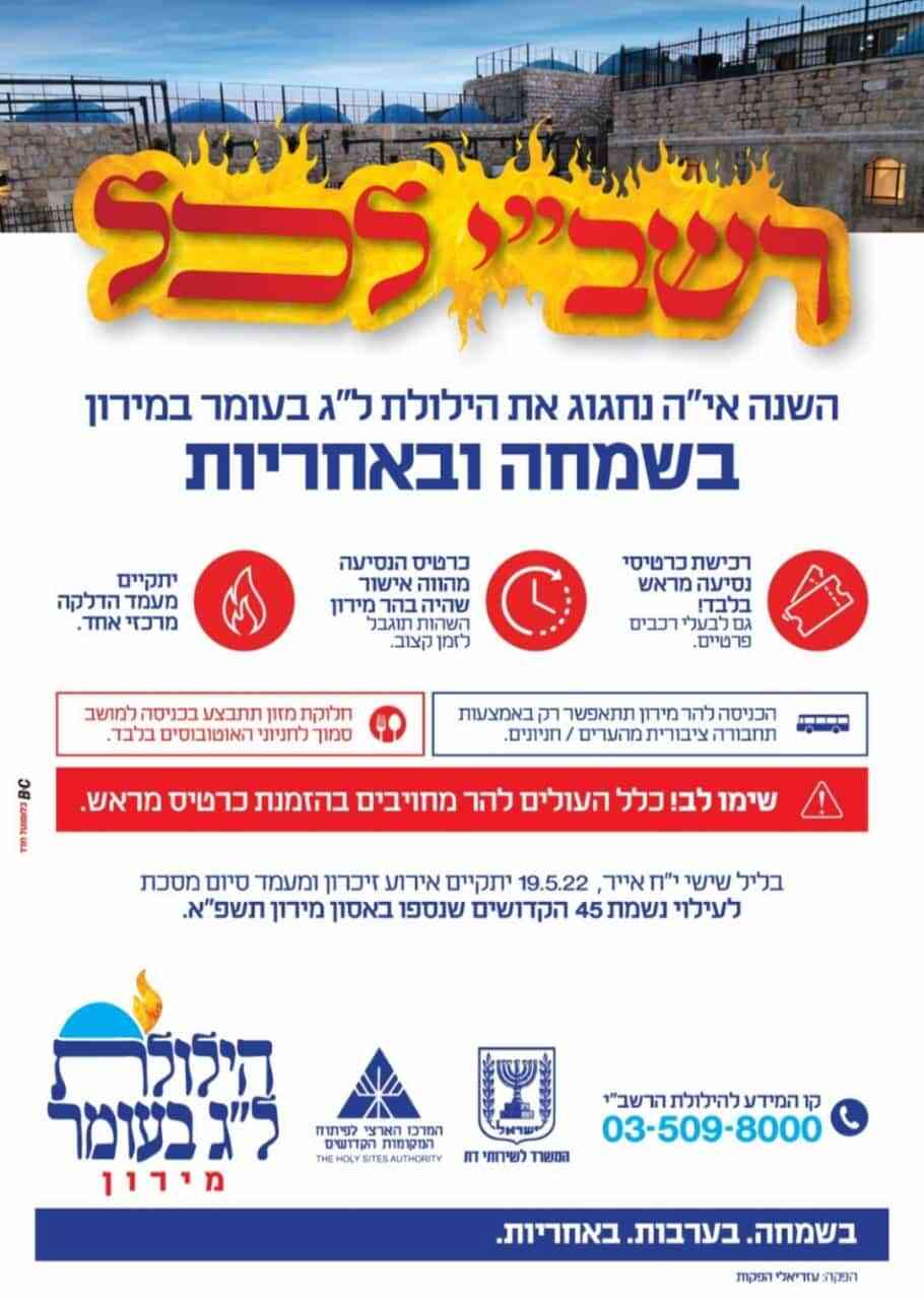 ז''א באים למירון ואז לא בטוח שאפשר בכלל להכנס לציון אז עושים סיבוב במקום, כדי לראות את מה שברו ומה בנו וחוזרים..?!כן הכונה היא שהדלקה של בואיאן יתקיים כרגיל בהתחלת האירוע