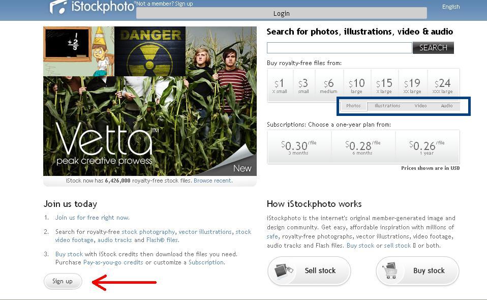 והאתר מקדם יותר את istockphoto בראשו, שבו התמונות עולות כסף